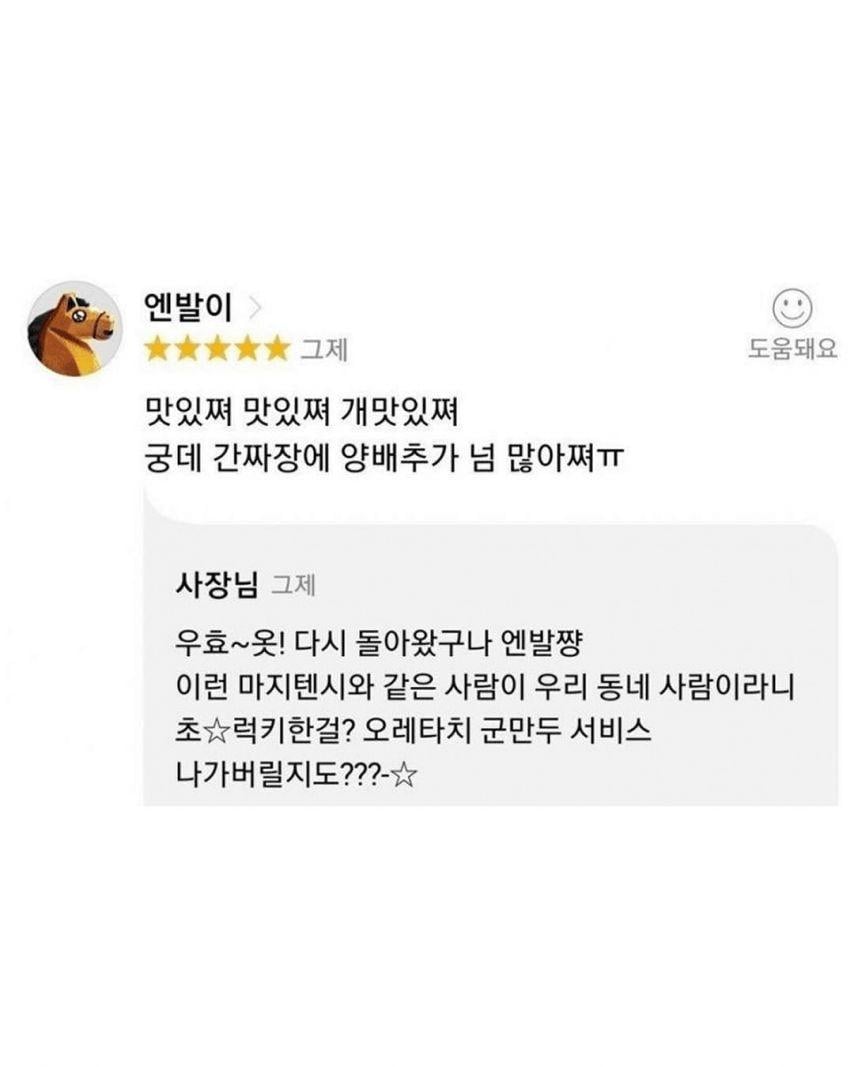 흠 ... 우리가게 평가글에 사장이 직접 덧글 달아주는게 유행이라고 했지...