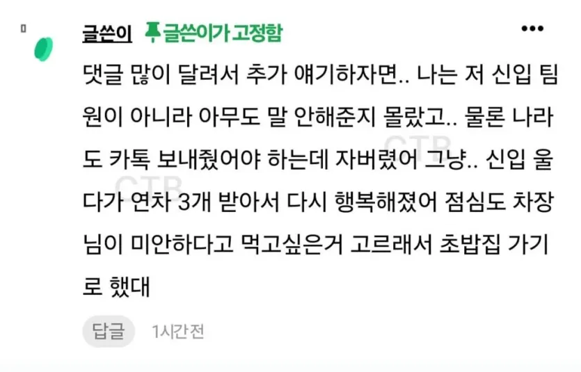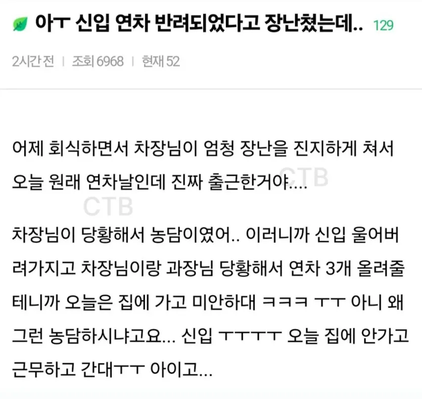 아ㅜㅜ 신입 연차 반려되었다고 장난쳤는데..