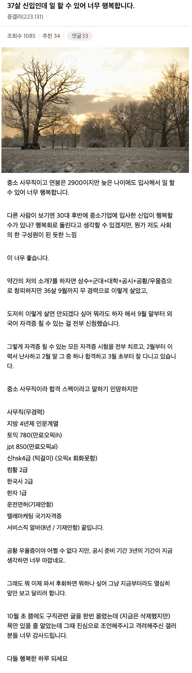 일 할 수 있어서 행복하다는 37세 신입