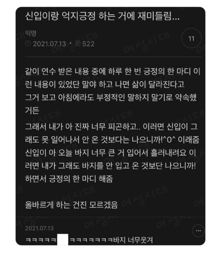 신입이랑 억지긍정 하는 거에 재미 들림.JPG