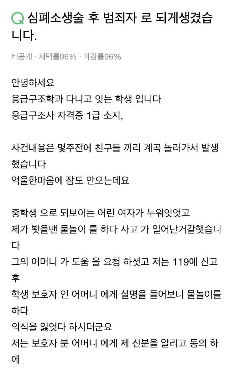 심폐소생술 하다 누명쓴 남학생 ㄷㄷ