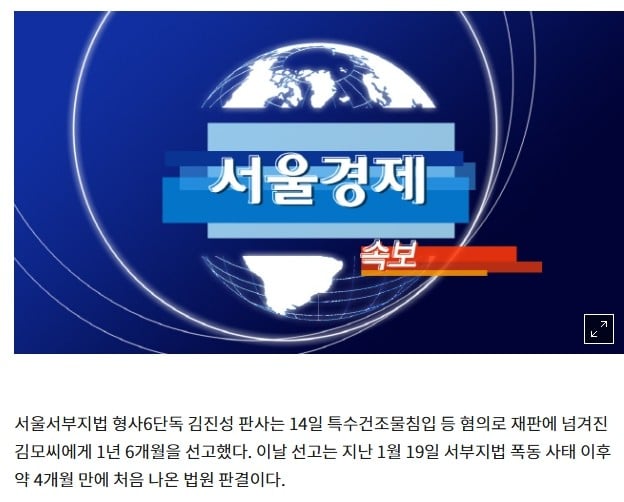 서부지법 난동 첫 선고…30대 男 징역 1년6개월