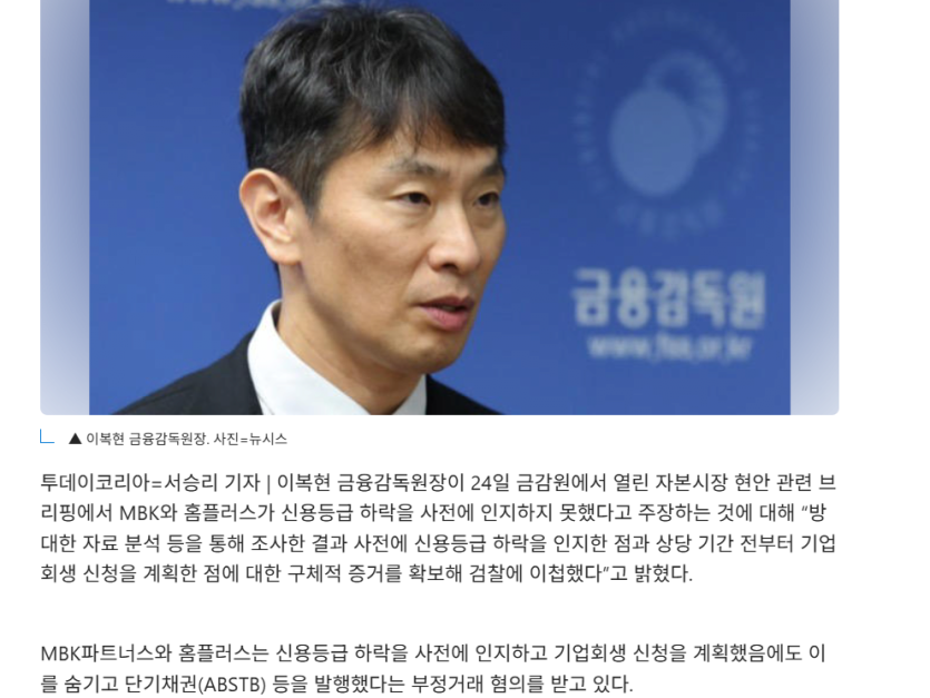 홈플러스 사태 관련해서 금감원 조사 결과, MBK 측에서는 이런 이슈를 사전에 인지하지 못했다고 주장했으나