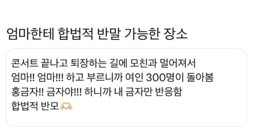 엄마한테 합법적 반말 가능한 장소.