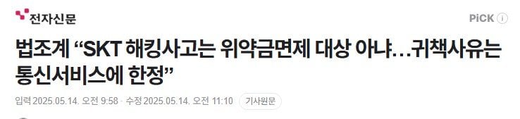 법조계 "SKT 해킹사고는 위약금면제 대상 아냐..." rh1 0 97 0 2025.05.14 19:15 https://n.news.naver.com/article/030/0003312160?sid=105 법조계 "SKT 해킹사고는 위약금면제 대상 아냐..." 0