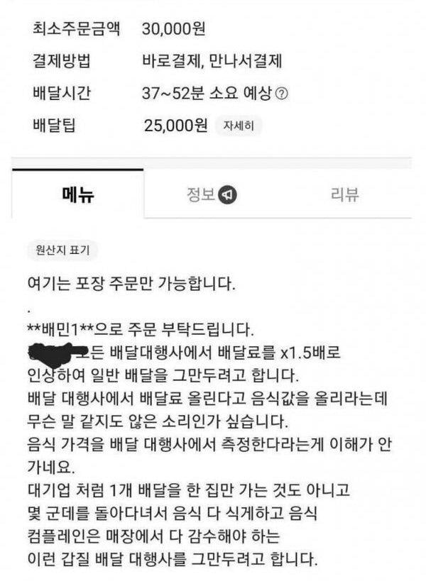 배달비가 25,000원인 식당