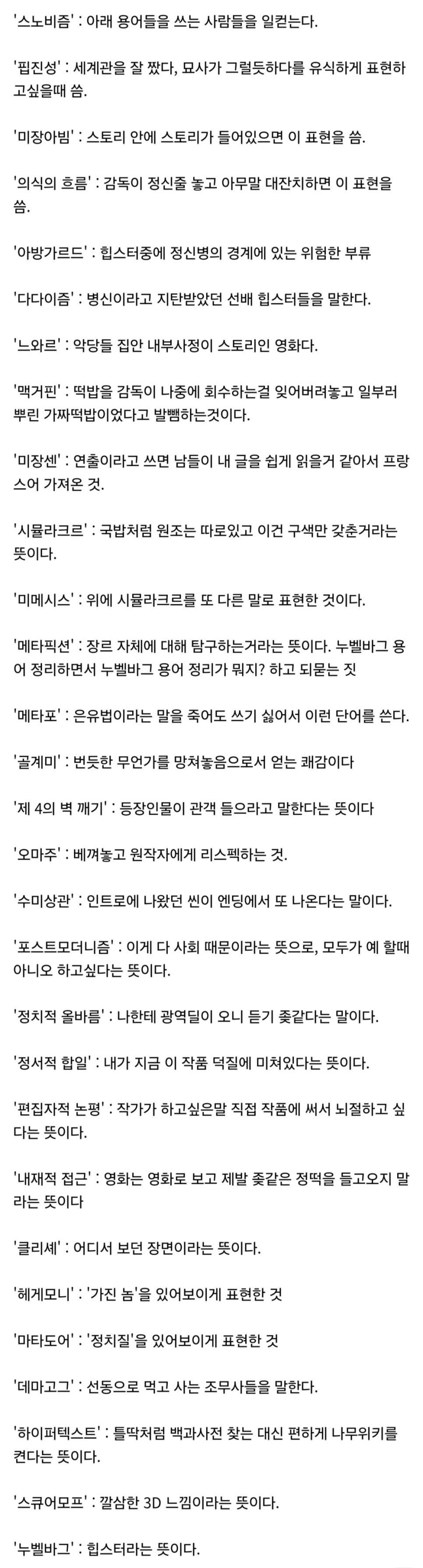 시네필이 쓰는 고상한 단어들의 뜻 해석