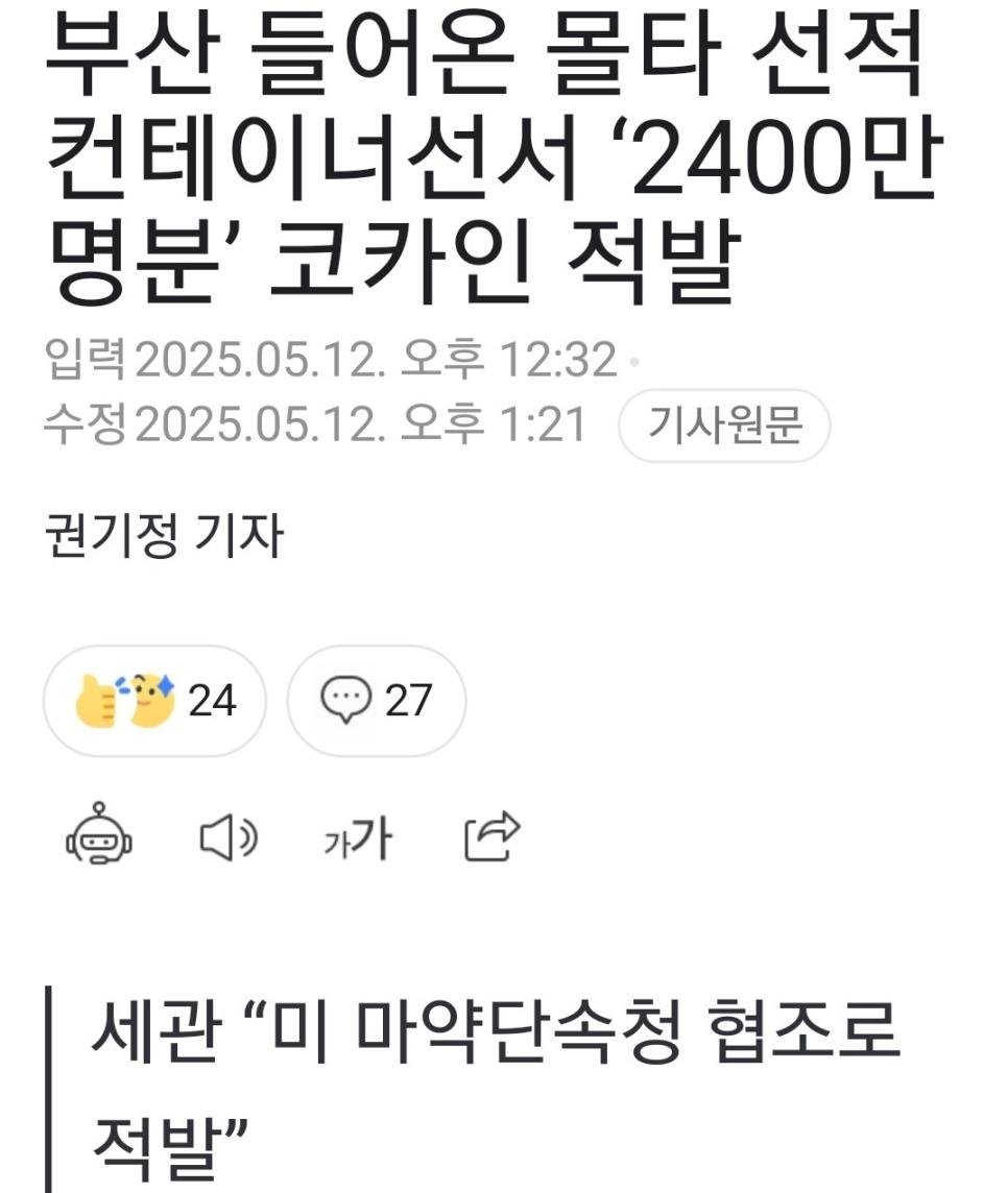 2400만명분 코카인 발견 ㄷㄷㄷ
