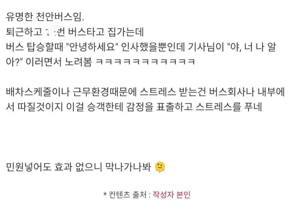 버스탈때 안녕하세요 인사했다 기사님이 "야, 너 나 알아?" 이럼..