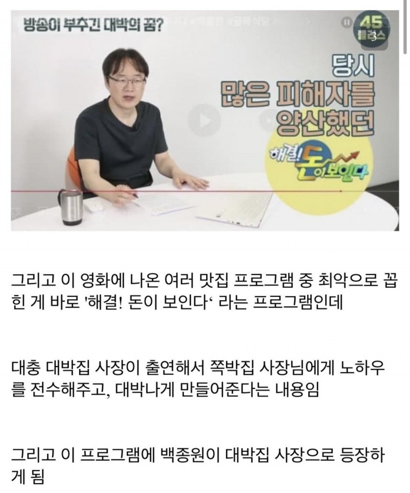 김재환PD가 계속해서 백종원을 저격하는 이유