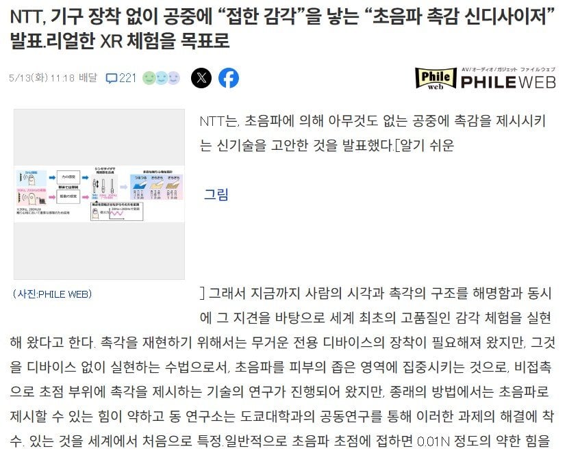 이번에 일본에서 만들어진 개쩌는 기술 rh1 0 97 0 2025.05.14 00:15 초음파를 이용해서 손에 감촉을 느끼게 하는 기술이 도쿄대학에서 만들어짐 이제 VR로 찌찌 만지기 쌉가능 이번에 일본에서 만들어진 개쩌는 기술 0