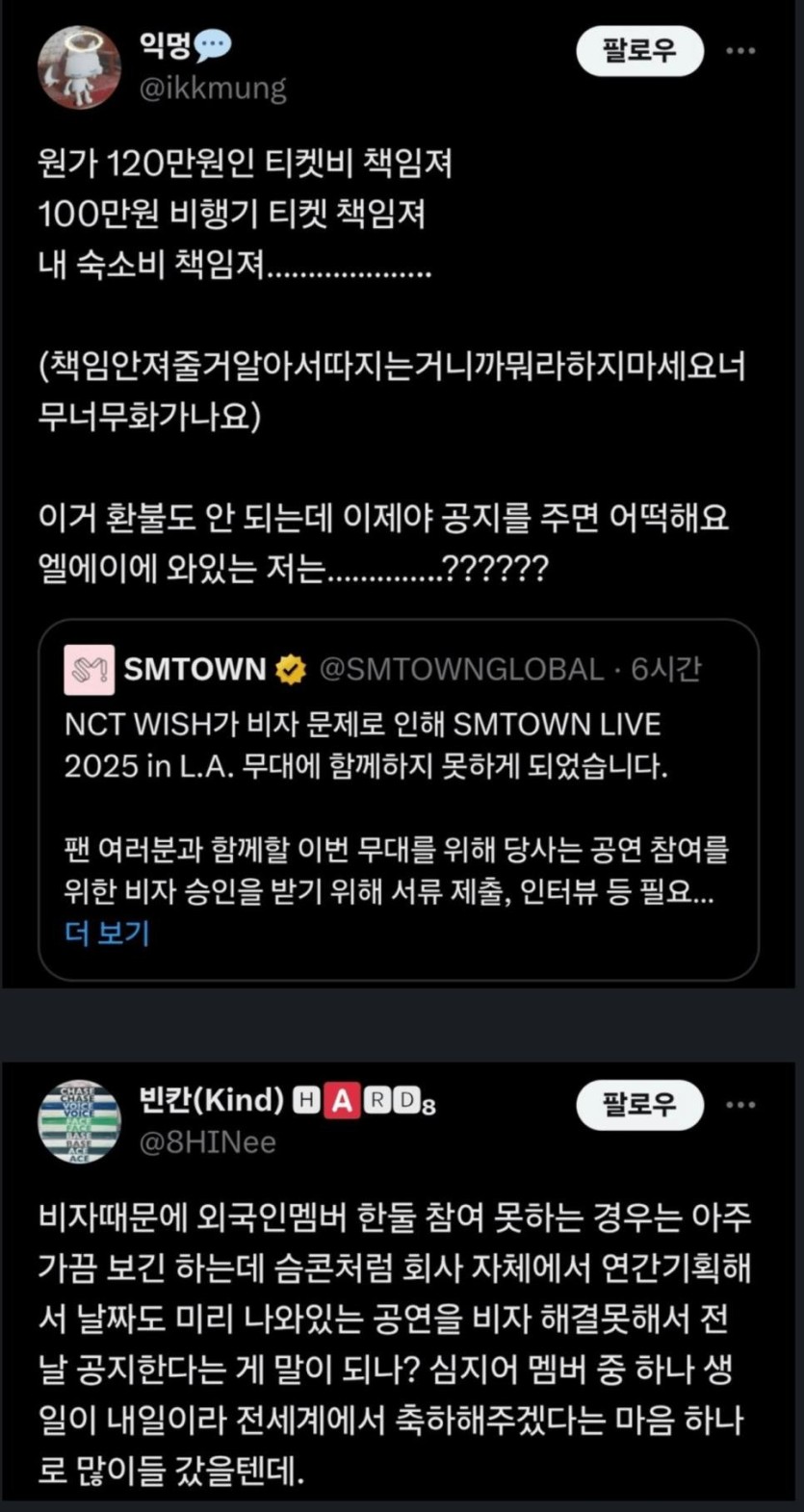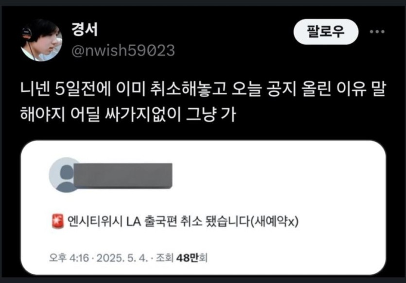 SM은 5일전에 비행기 취소 해놓고 공지는 하루전날에 함