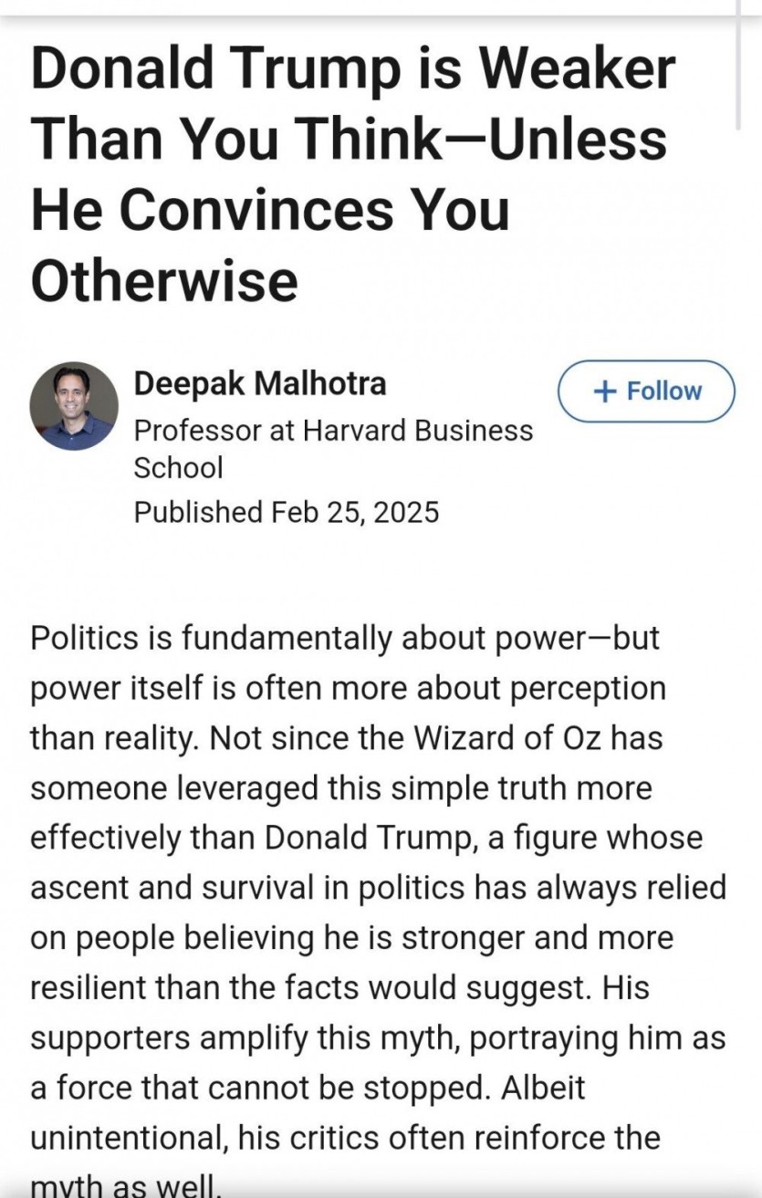 왜냐면 싸이코패스 흉내를 내는 일반인은 진짜 싸이코패스를 이길리 없으니까. 당장 트럼프가 푸틴이 우크라이나 아이들을 집중 폭격한걸로 경악했다는 소식대로라면 트럼프는 강한척 하기 좋아하는 예능인이지, 진짜 무감정하고 냉혹한 괴물은 아님.