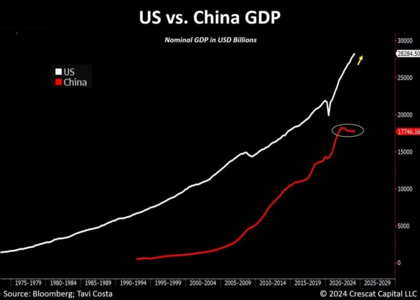 그리고 실제로 이는 적중해 잘 먹히고 있었고 중국은 고사직전까지 몰려 미국 gdp 대비 76% 에서 64% 로 격차가 벌어지기 시작했음.