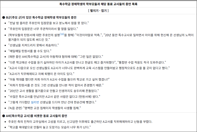 무죄 받은 특수교사 다른 장애아 부모들 발언