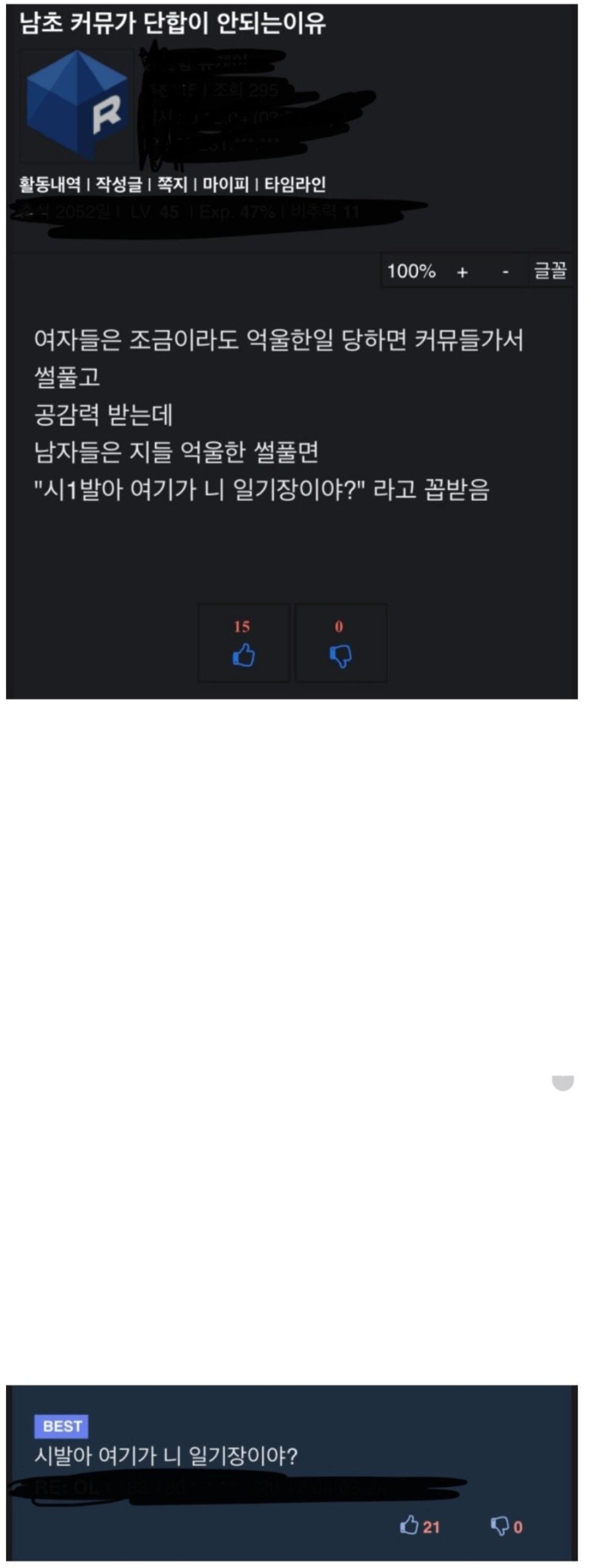 남초 커뮤가 단합이 안되는 이유