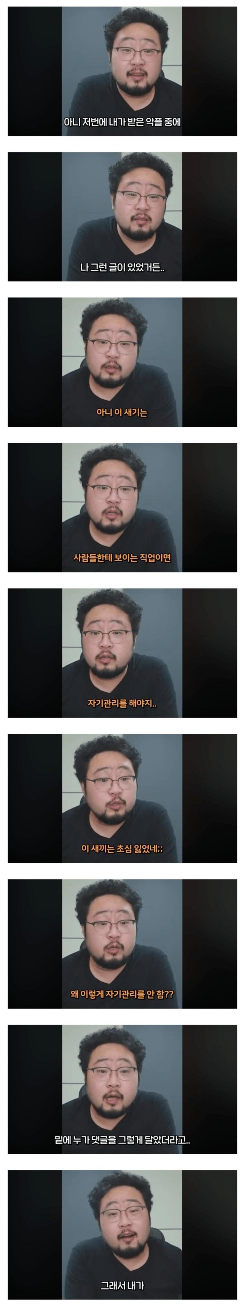 자기관리 안했다고 욕 먹는 유튜버