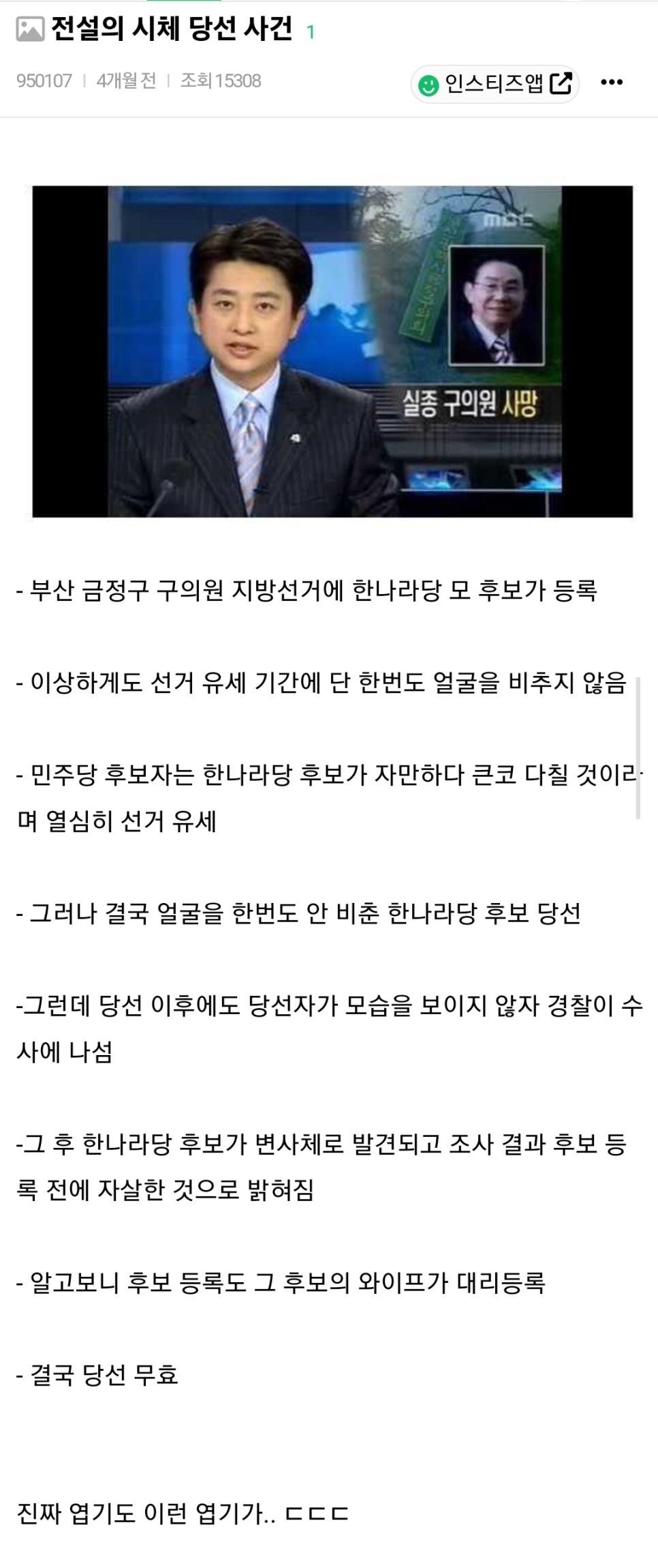 결과적으로 해당 후보는 3위를 차지하며 당선되었으나, 선거 후 한 달 뒤 숨진 채 발견됨.