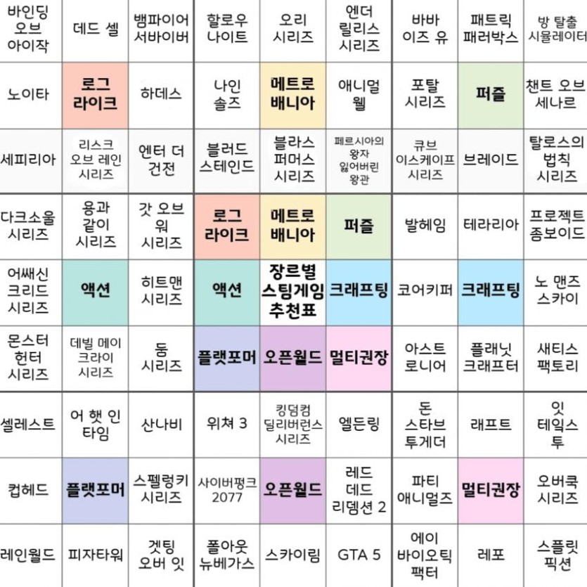 인디겜갤러리 선정 2025 스팀게임 장르별 추천표