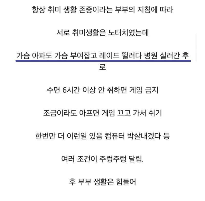 남편 게임 시간 제한하고 컴퓨터 박살 내겠다고 한 아내