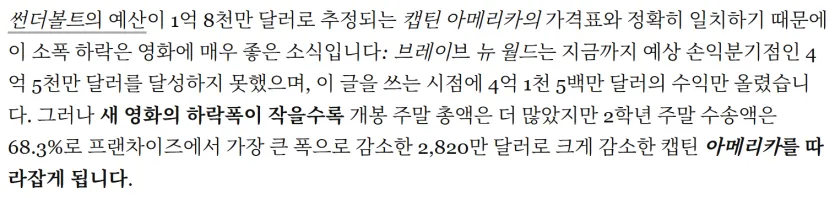 마블 <썬더볼츠> 흥행 근황