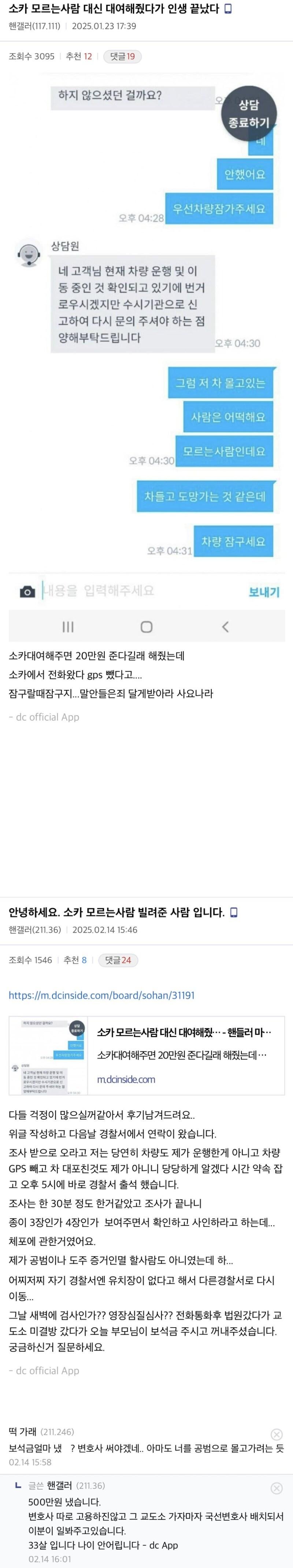 20만원 받고 모르는 사람에게 차량 대여한 사람
