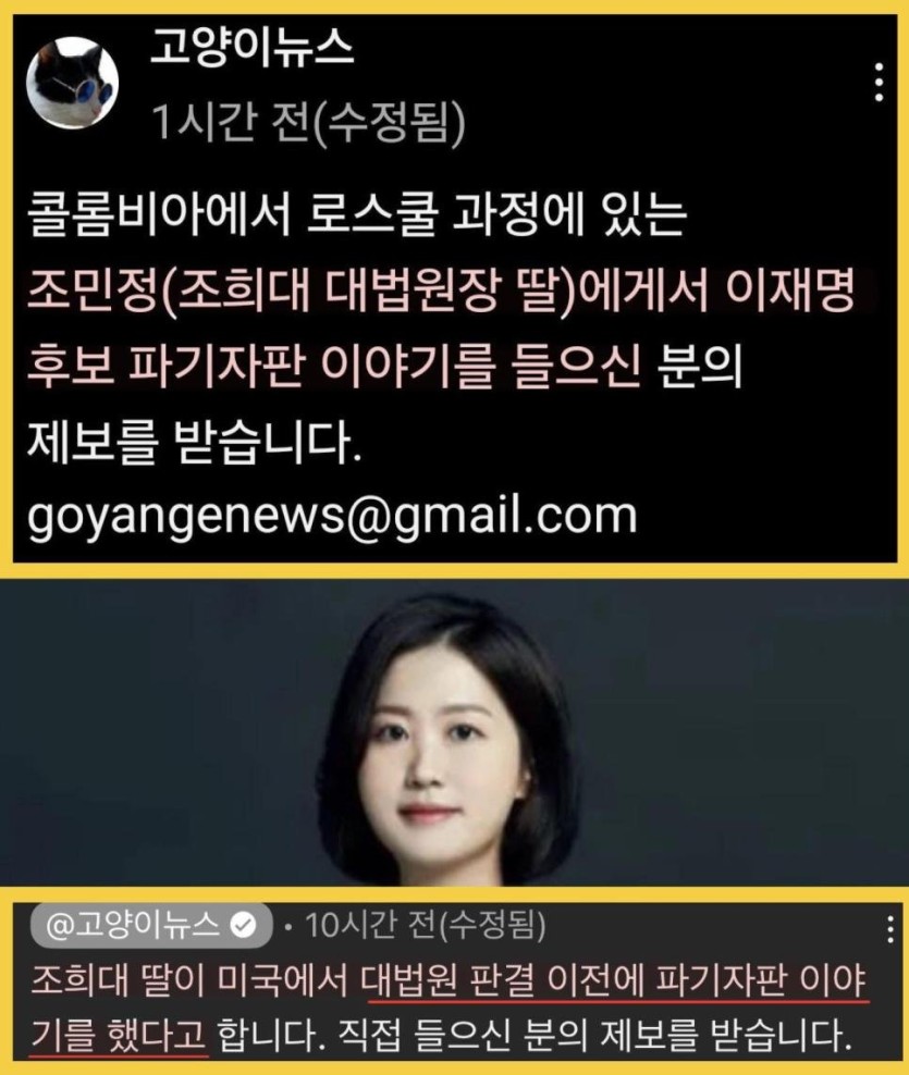 고양이뉴스 : 조희대 딸 제보받습니다