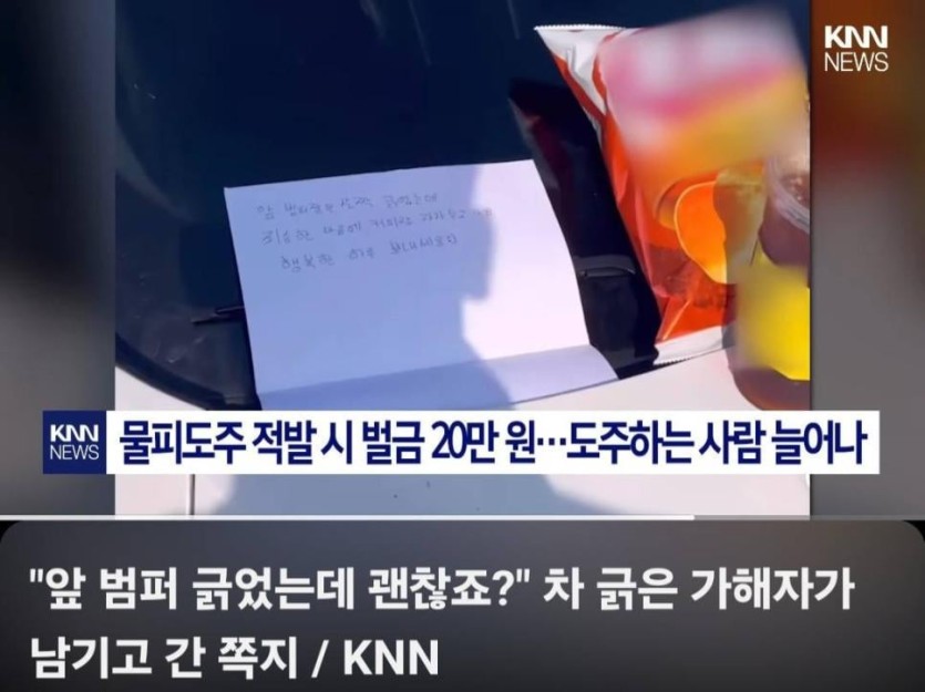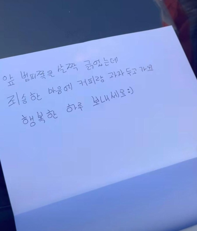 어느 차주가 받은 사과쪽지와 간식ㄷㄷㄷ