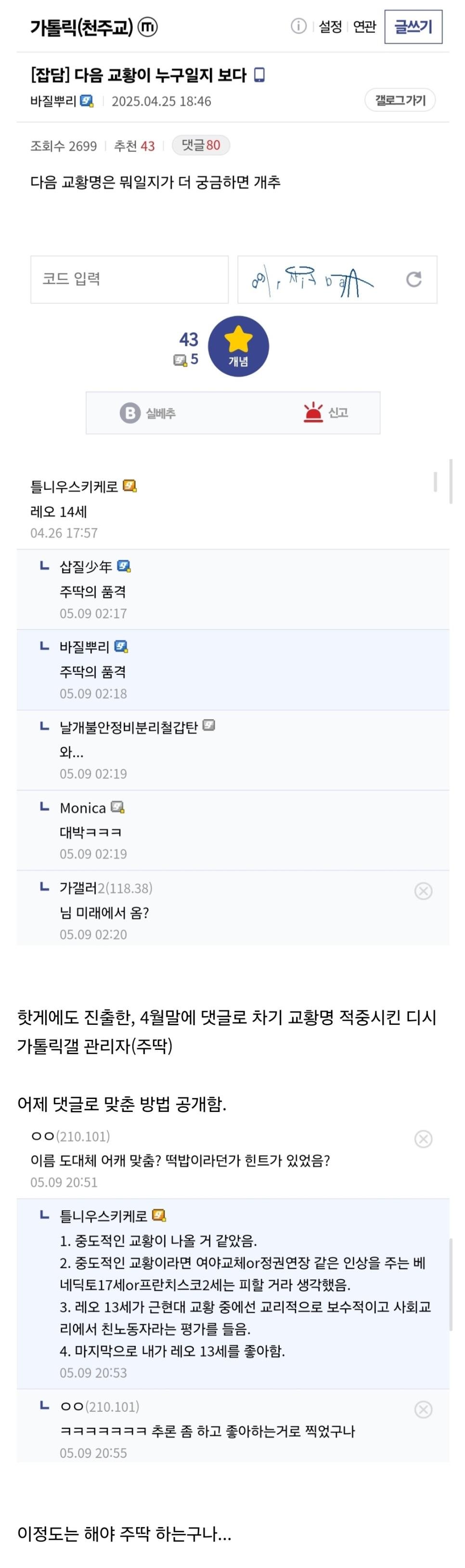 디시 가톨릭갤 관리자가 차기 교황명 맞춘 방법....오피셜