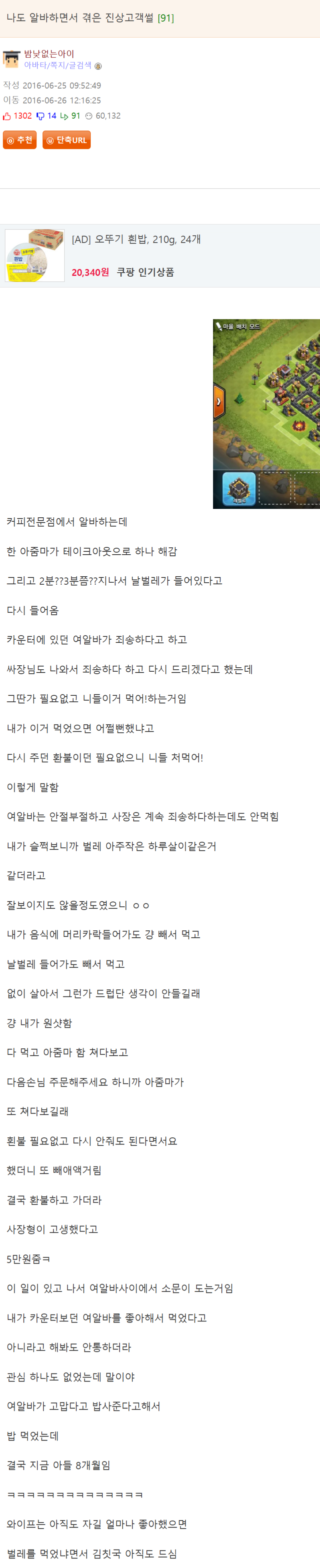카페 진상 아줌마때문에 벌레 먹은 알바