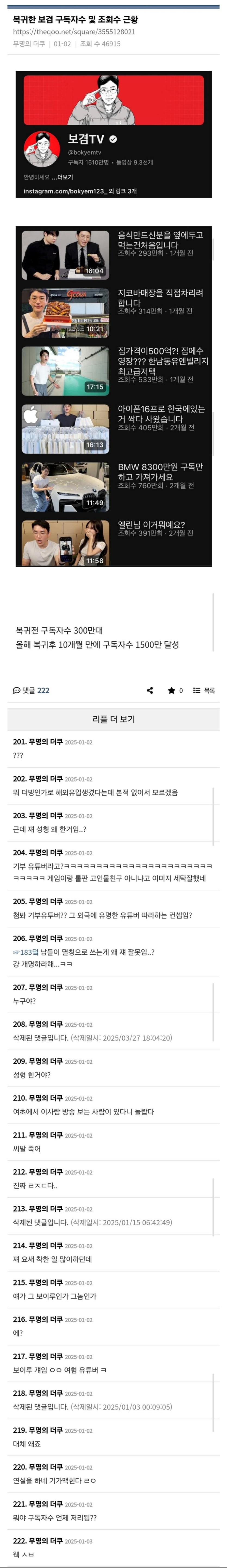 보겸 복귀 더쿠 반응