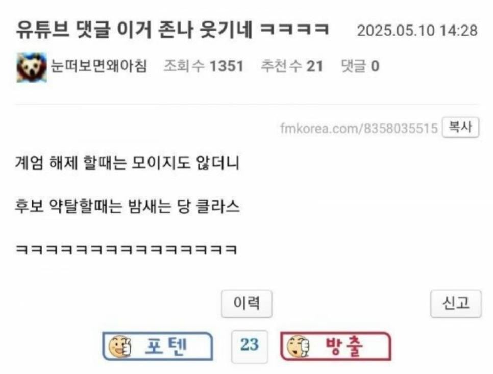 유튜브 댓글 이거 존나 웃기네 ㅋㅋㅋㅋ
