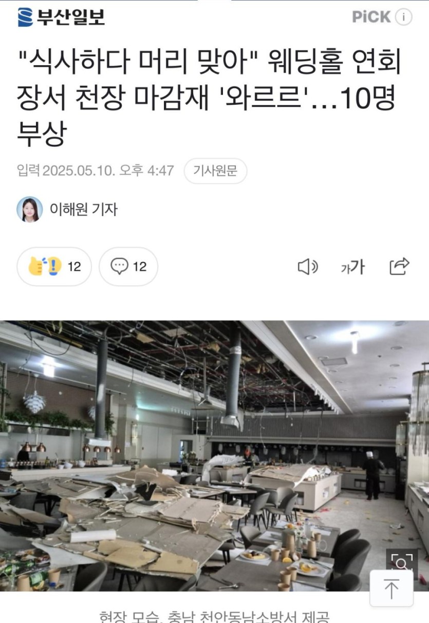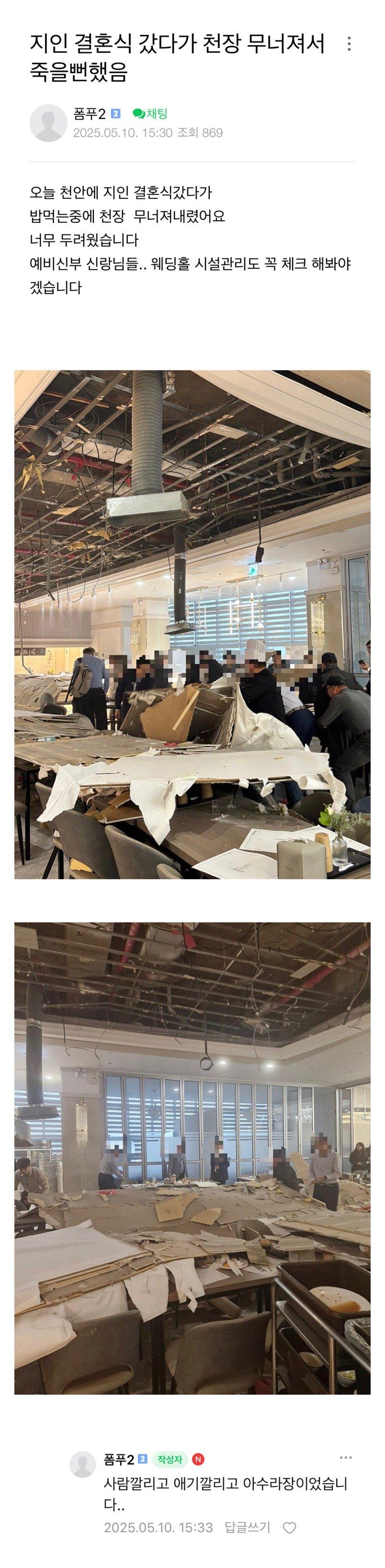 지인 결혼식 갔다가 천장이 무너져 죽을뻔함 .jpg