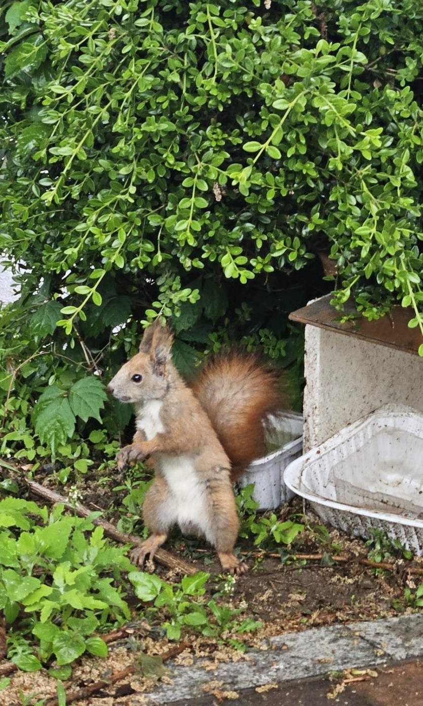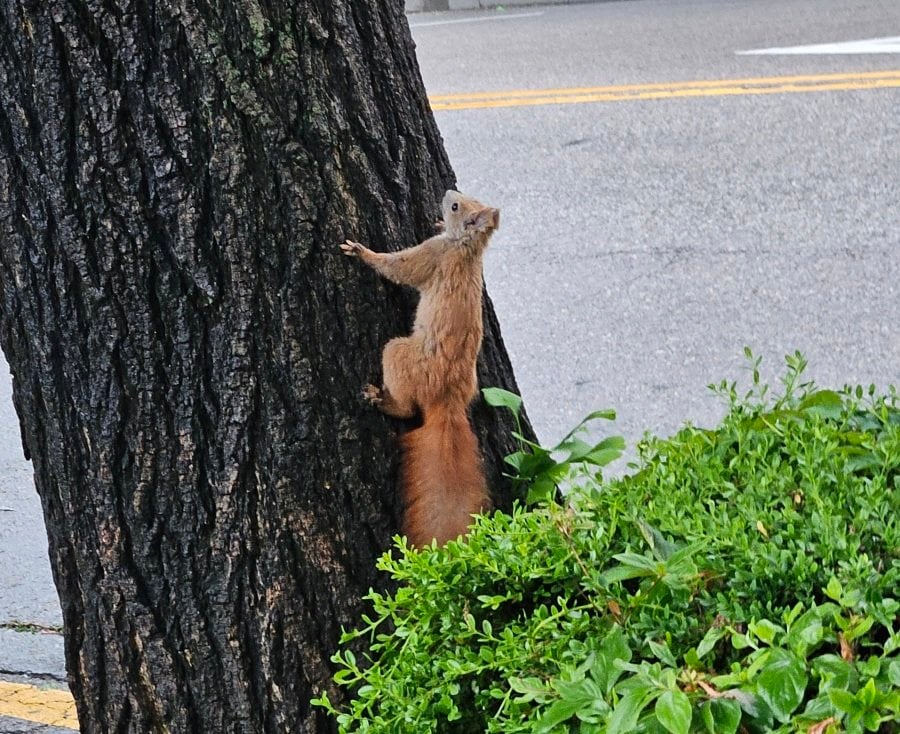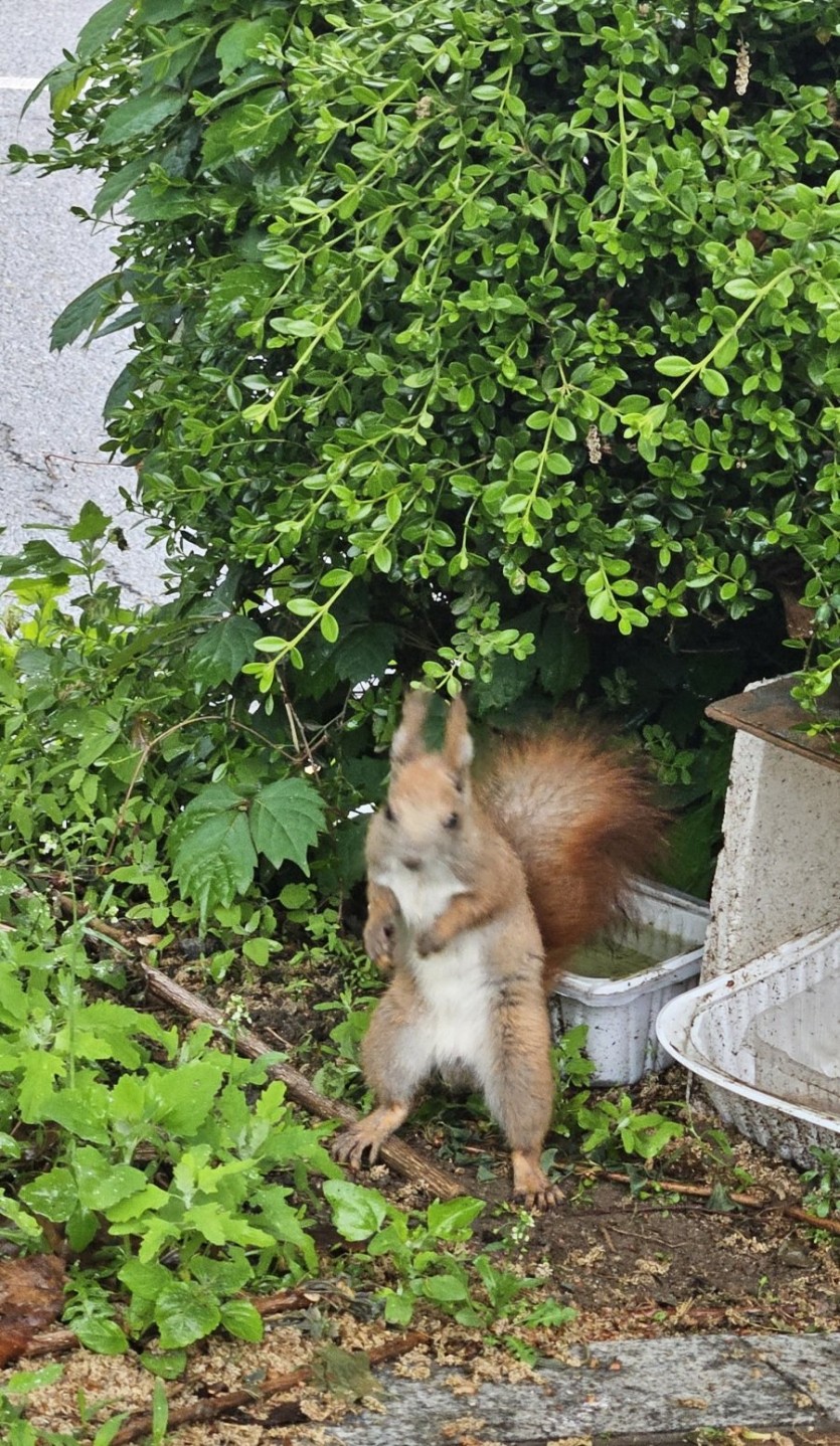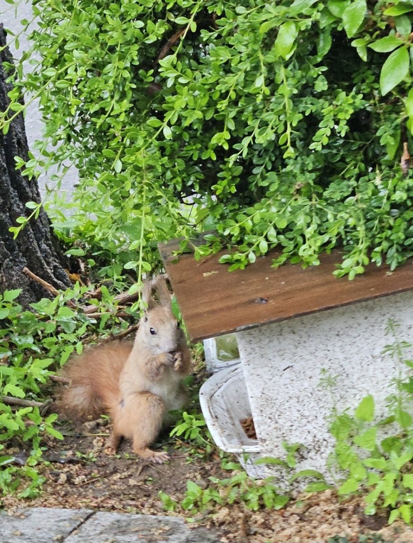 고양이 사료 먹는 청설모