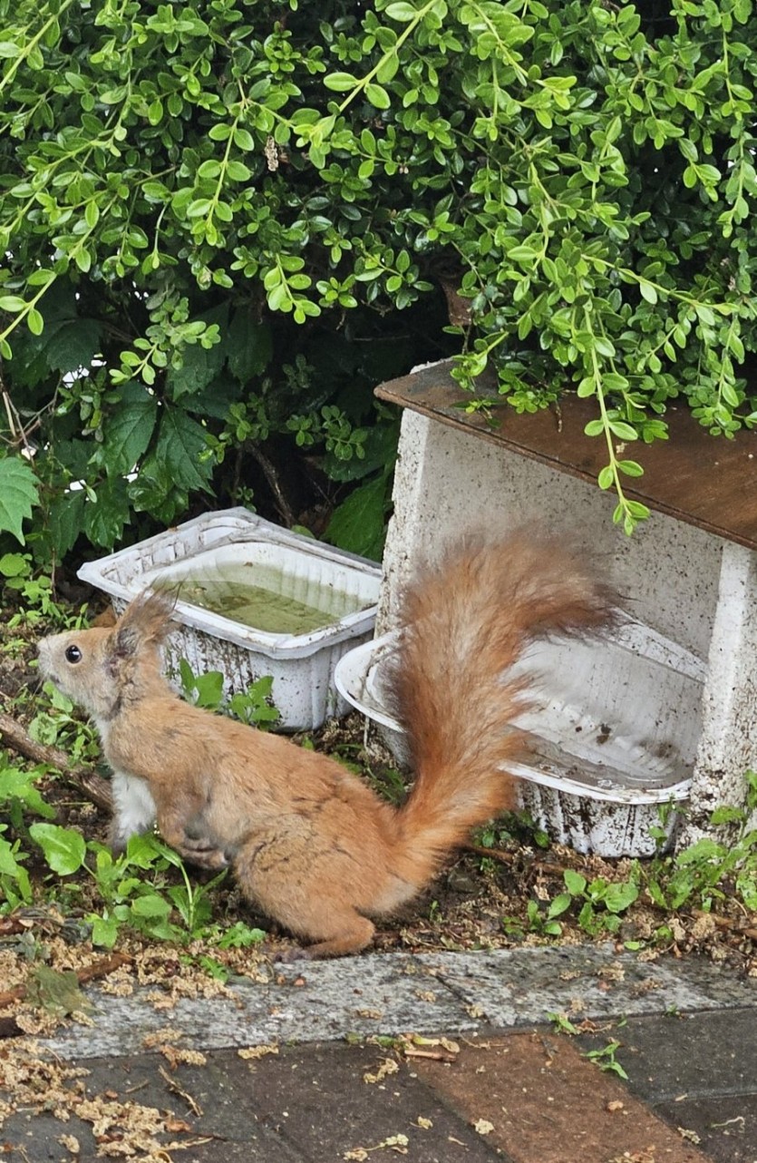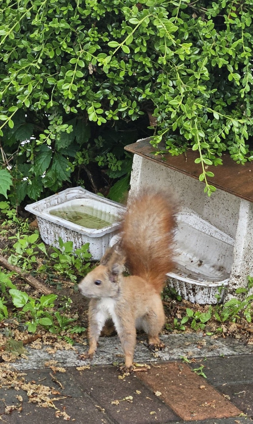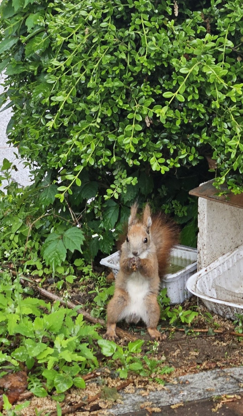 고양이 사료 먹는 청설모