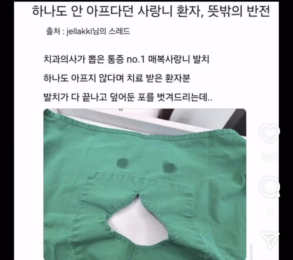 사랑니 뽑는데 안아프다던 손님