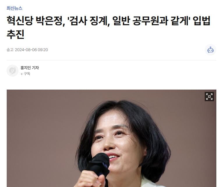 혁신당 박은정 "개검떡찰 처벌도 일반 공무원과 같게" 입법 추진