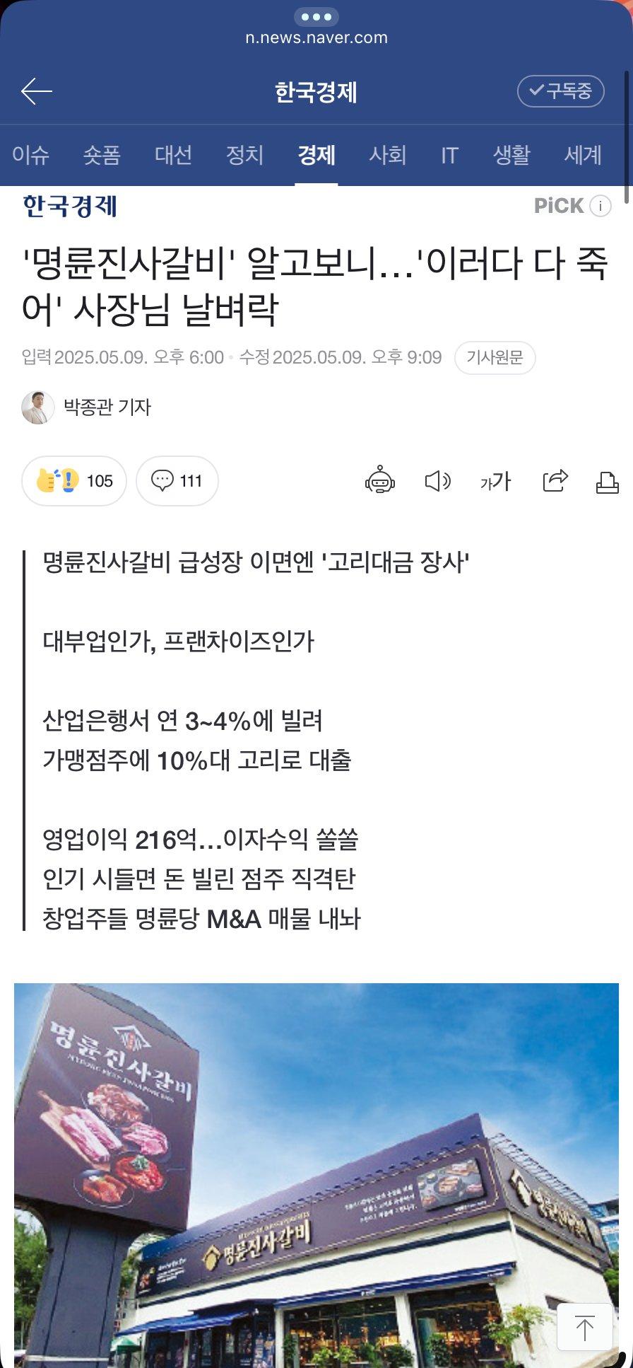 명륜진사갈비, 점주들 상대로 대부업 놀이 rh1 0 129 0 2025.05.10 00:45 https://n.news.naver.com/article/015/0005129860 0