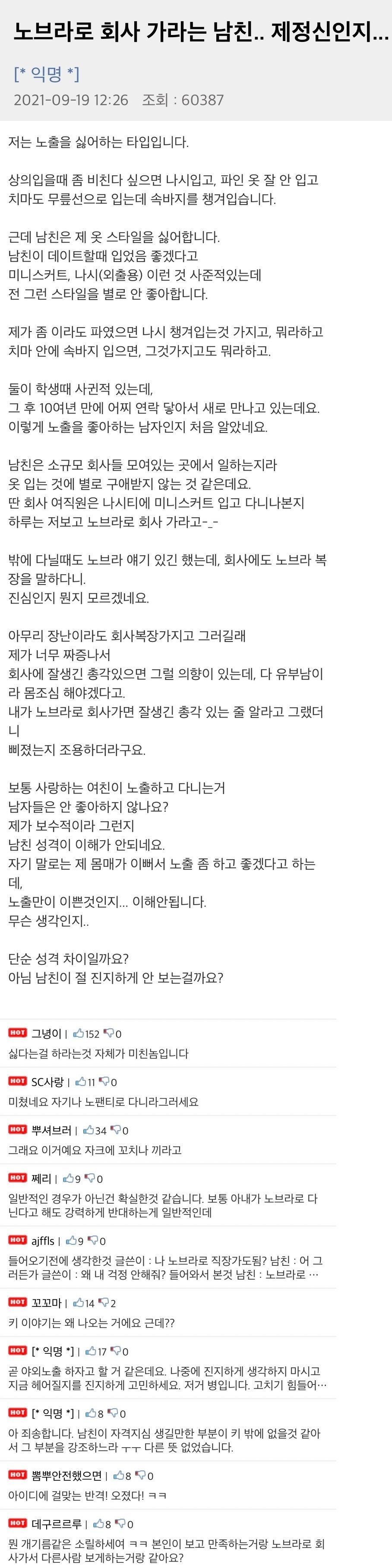 노브라로 회사 가라는 남친.. 제정신인지...