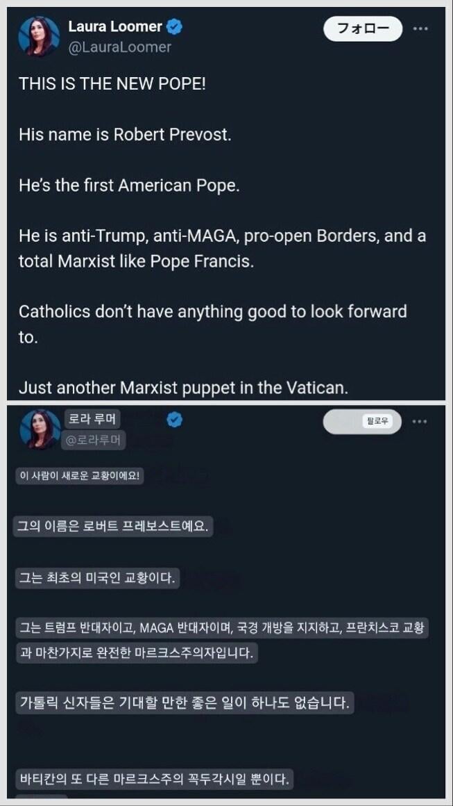 너무나도 예상을 벗어나지 못하는 새 교황 성하에 대한 MAGA들의 반응