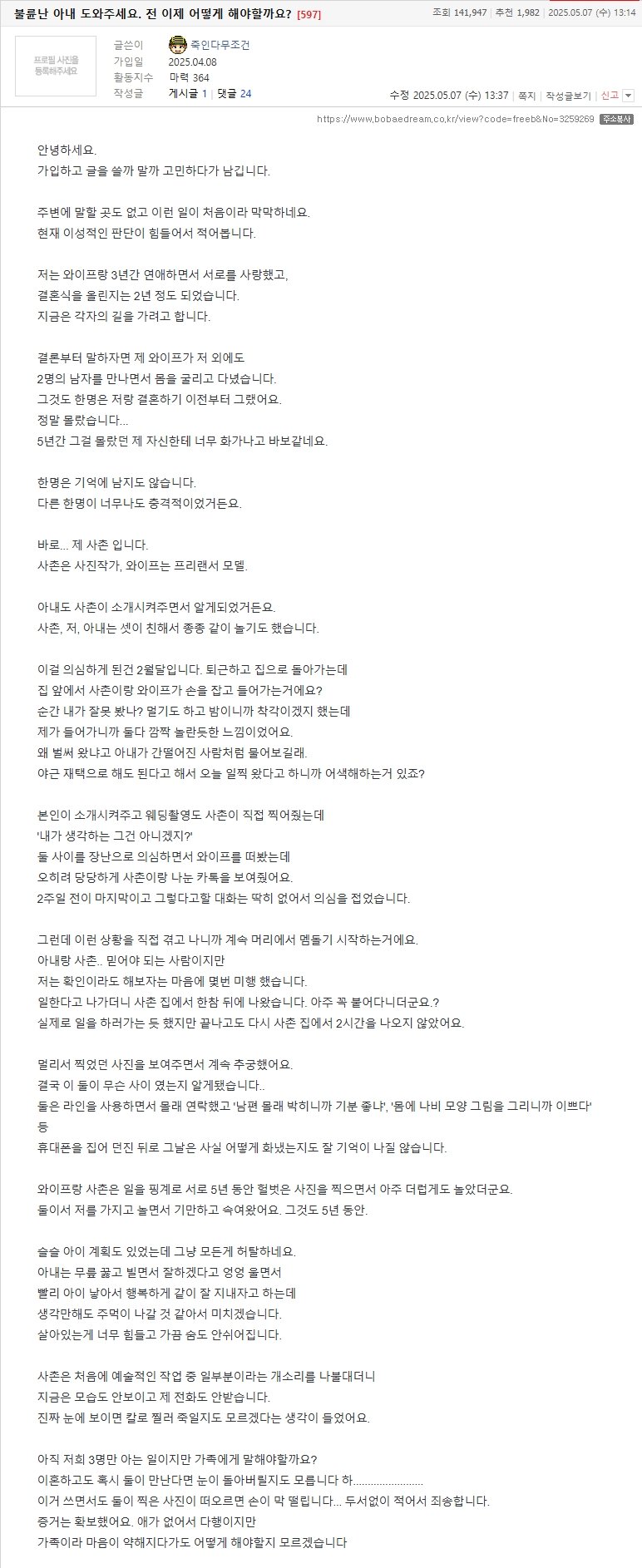 보배드림에서 난리 난 집안 박살낸 와이프 불륜