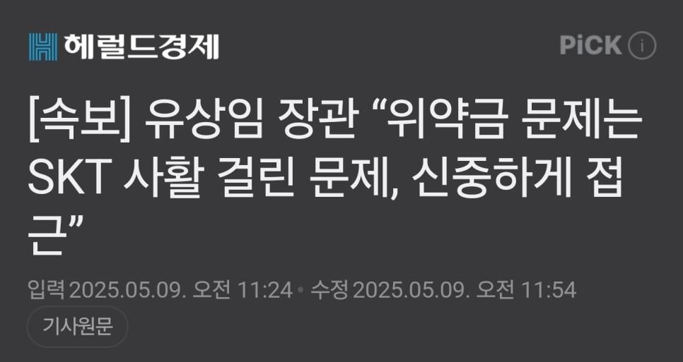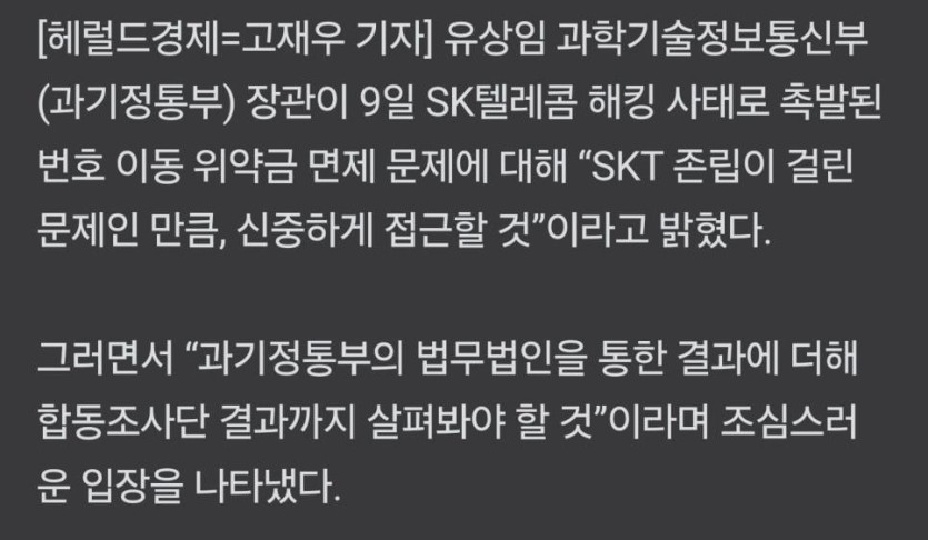 과기부 "위약금 SKT 존립걸려... 신중하게".jpg rh1 0 97 0 2025.05.09 16:15 https://n.news.naver.com/article/016/0002468813?ntype=RANKING ??? 0