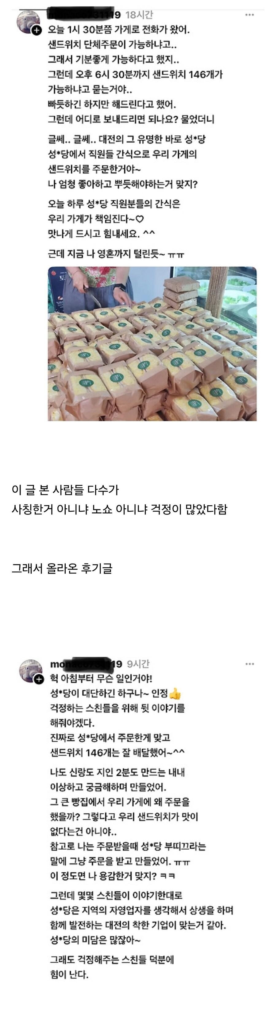 대전 샌드위치 대량 노쇼 주문건인줄 알았는데 ㄷㄷ
