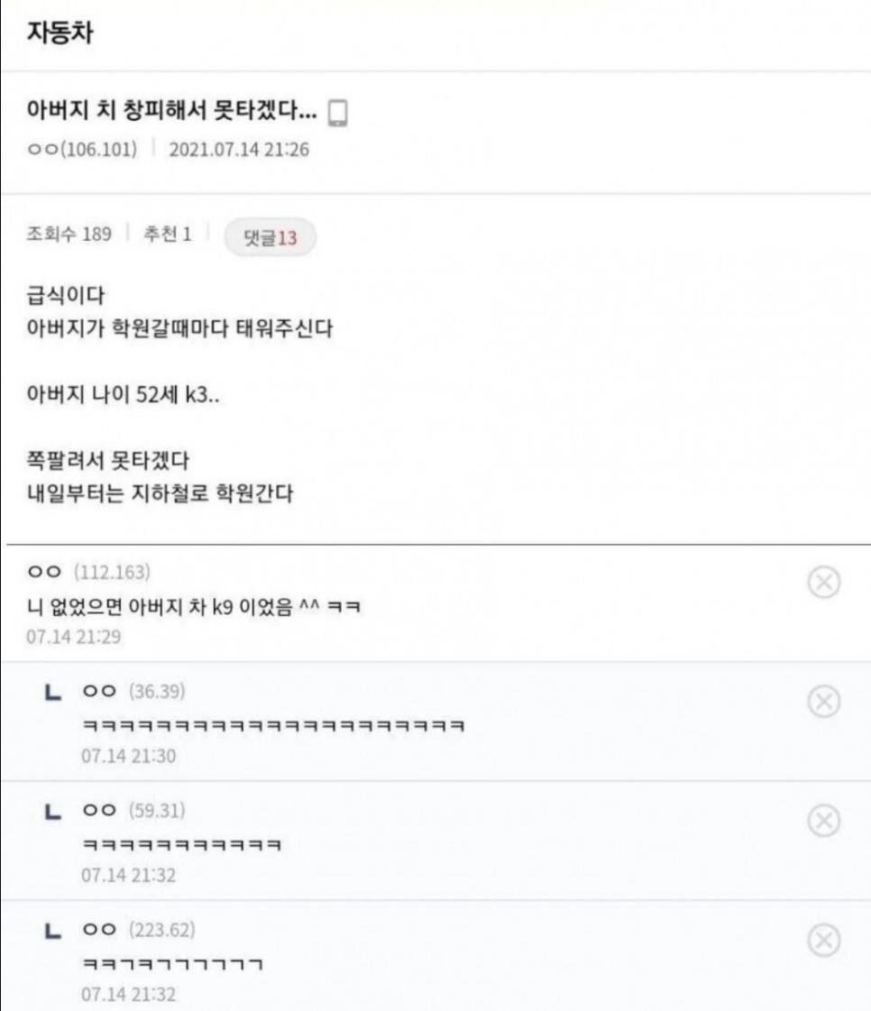 아버지 차가 창피해서 타기싫다는 급식.jpg