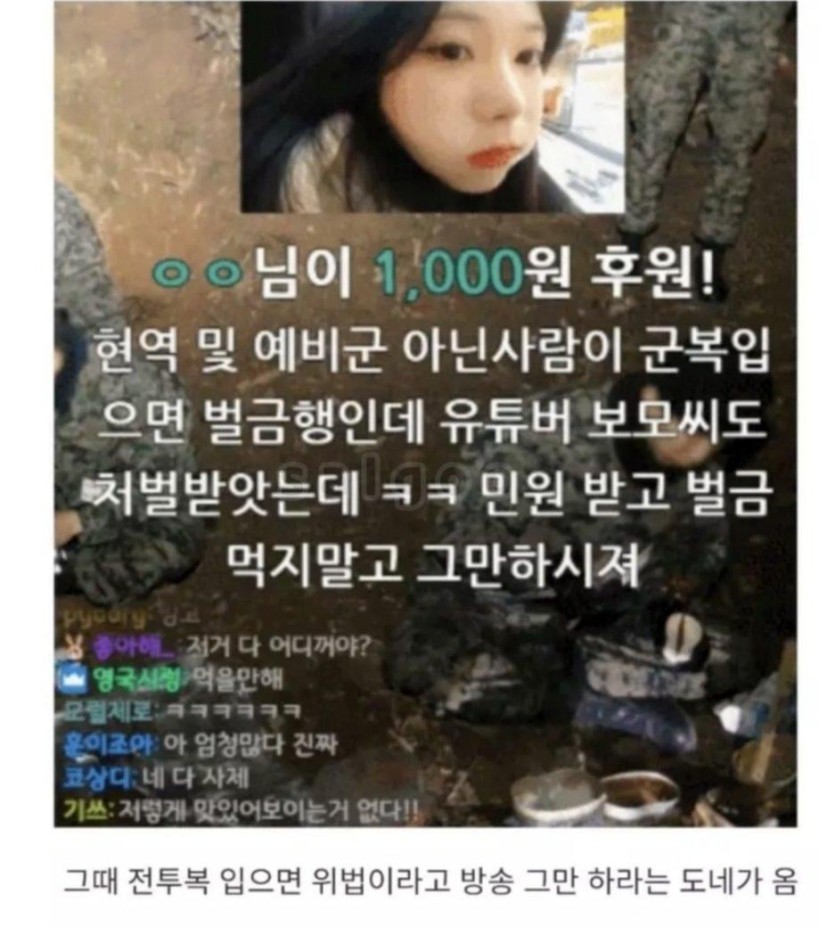 군복입고 방송하다가 울어버린 스트리머.jpg