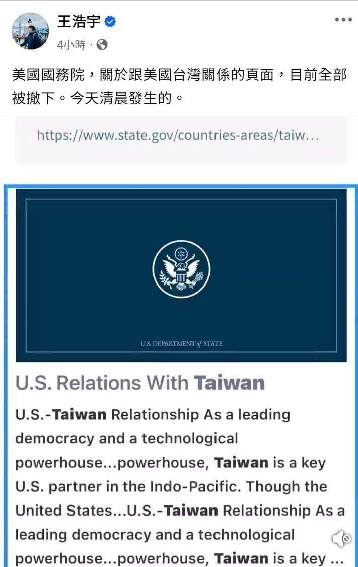 미 국무부 홈페이지에 미국 대만 관계 설명한 페이지 삭제됨