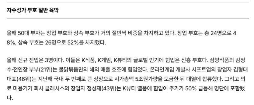 한국 사회가 아직까진 그래도 멋진 이유 rh1 0 189 0 2025.05.09 00:15 50대 부자중에 자수성가한 사람이 그래도 반은 되는 나라임 한국 사회가 아직까진 그래도 멋진 이유 0