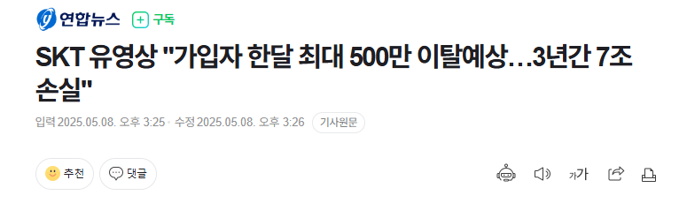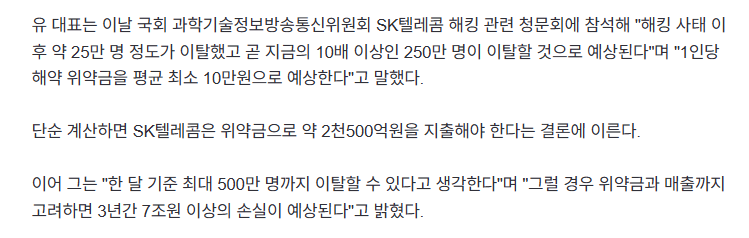 SKT 위약금 면제 시, 3년 간 약 7조 손실 추정