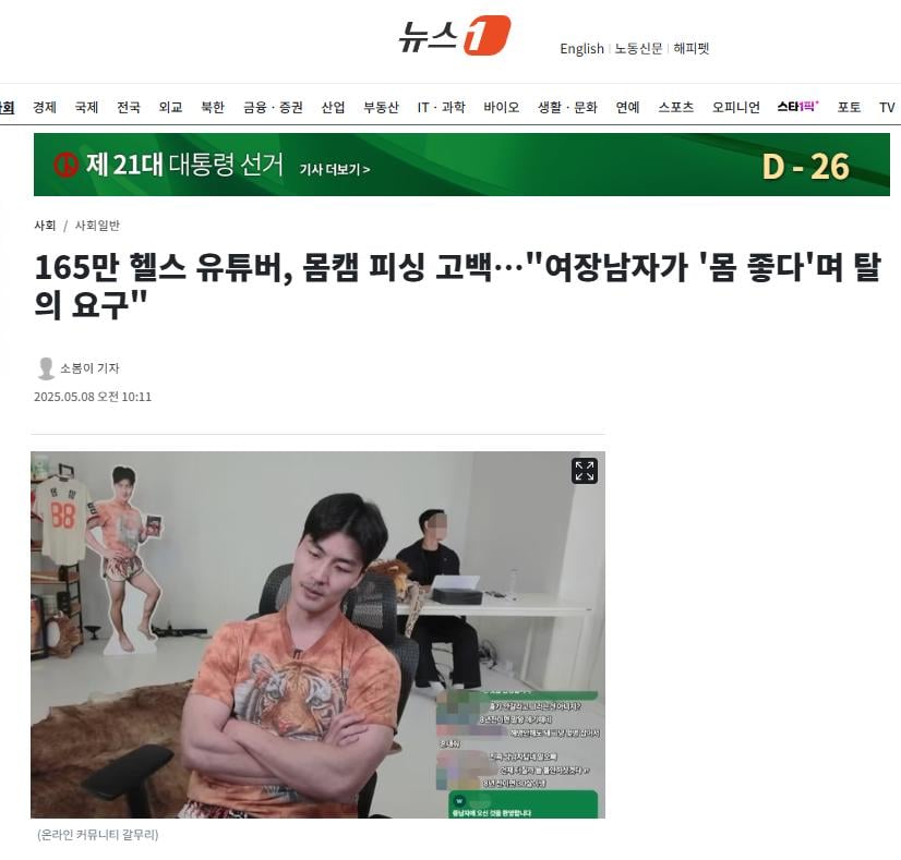 165만 헬스 유튜버, 몸캠 피싱 고백…"여장남자가 '몸 좋다'며 탈의 요구" rh1 0 126 0 2025.05.08 16:45 https://www.news1.kr/society/general-society/5776092구독자 165만명을 보유한 헬스 유튜버가 8년 전 이른바 '몸캠 피싱'을 당했다고 고백했다. 0