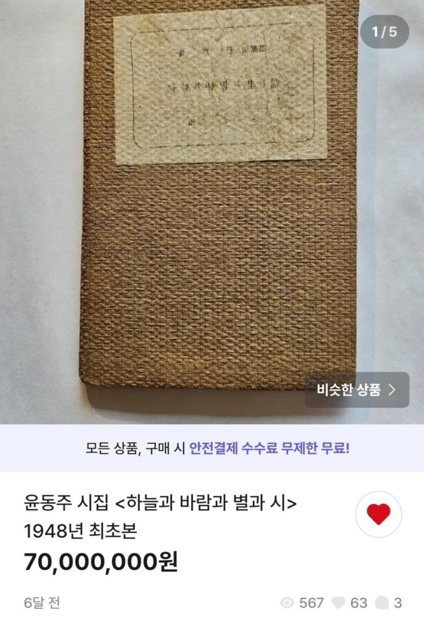 번개장터에 올라온 윤동주 최초본 시집.jpg